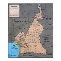 Камерун - подробная политическая карта с рельефом. Детальная политическая карта Камеруна с рельефом.