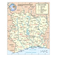 Кот-д'Ивуар - большая физическая карта с дорогами, городами и аэропортами. Большая физическая карта Кот-д'Ивуара с дорогами, городами и аэропортами.