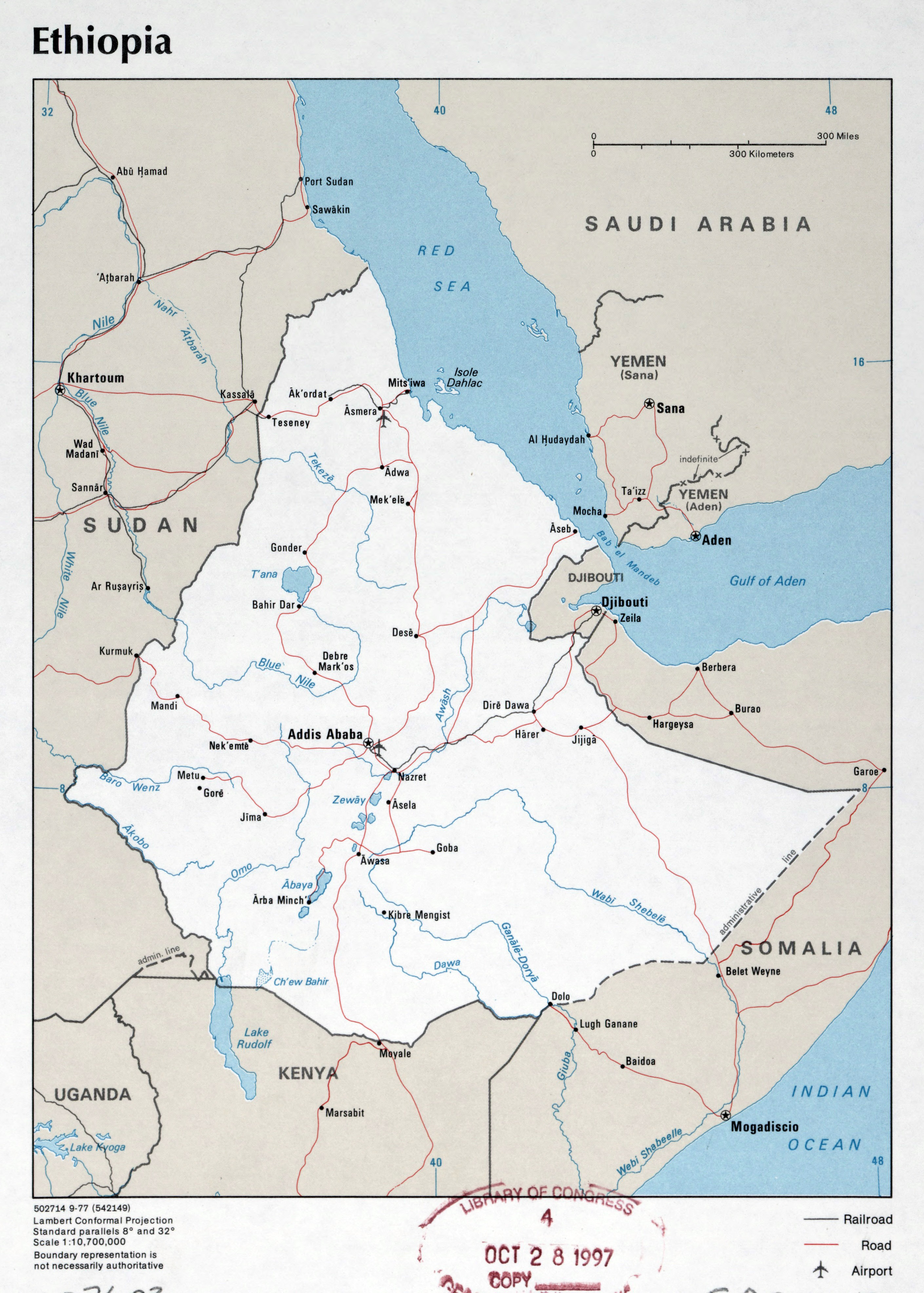 Эфиопия - большая детальная политическая карта с дорогами, городами и аэропортами - 1977. Большая детальная политическая карта Эфиопии с дорогами, городами и аэропортами - 1977.