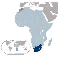 Южная Африка в Африке - детальная карта расположения. Детальная карта расположения Южной Африки в Африке.