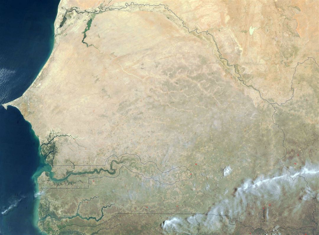 Сенегал - большая спутниковая карта. Большая спутниковая карта Сенегала.