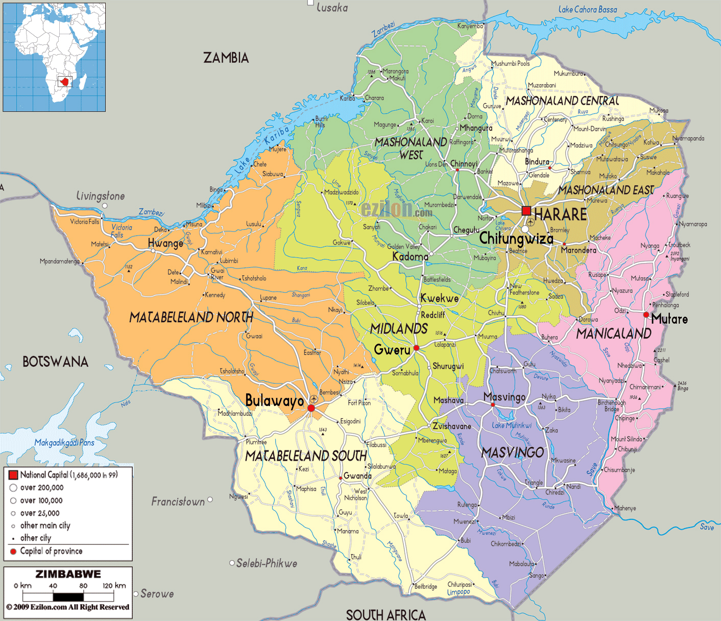 Описание карты Зимбабве