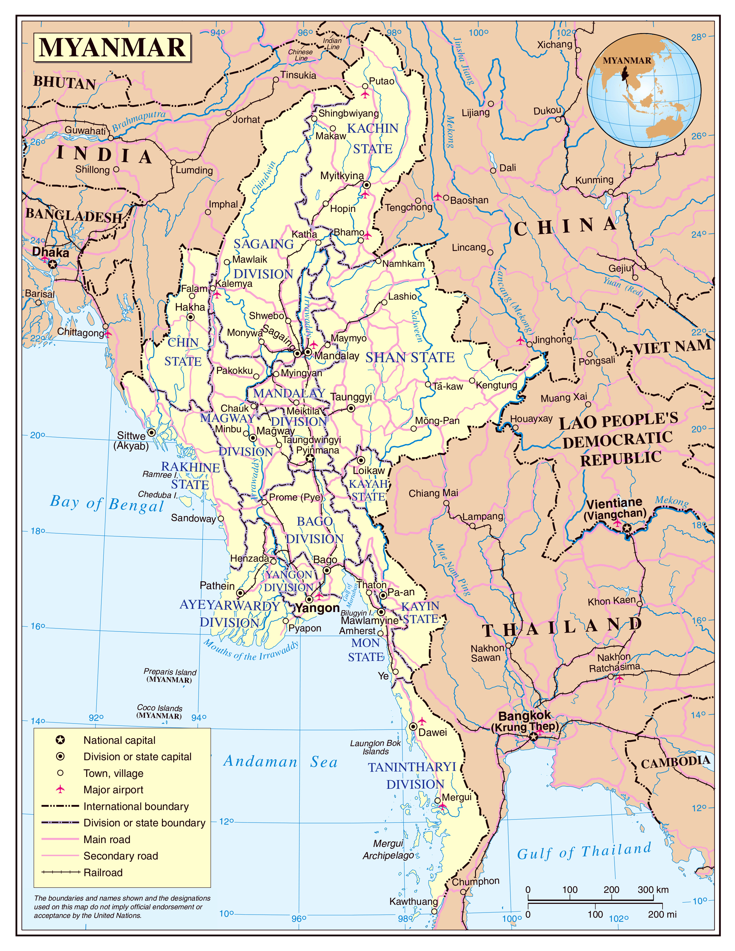 Бирма - большая детальная политическая и административная карта с дорогами, железными дорогами, городами и аэропортами. Большая детальная политическая и административная карта Бирмы с дорогами, железными дорогами, городами и аэропортами.