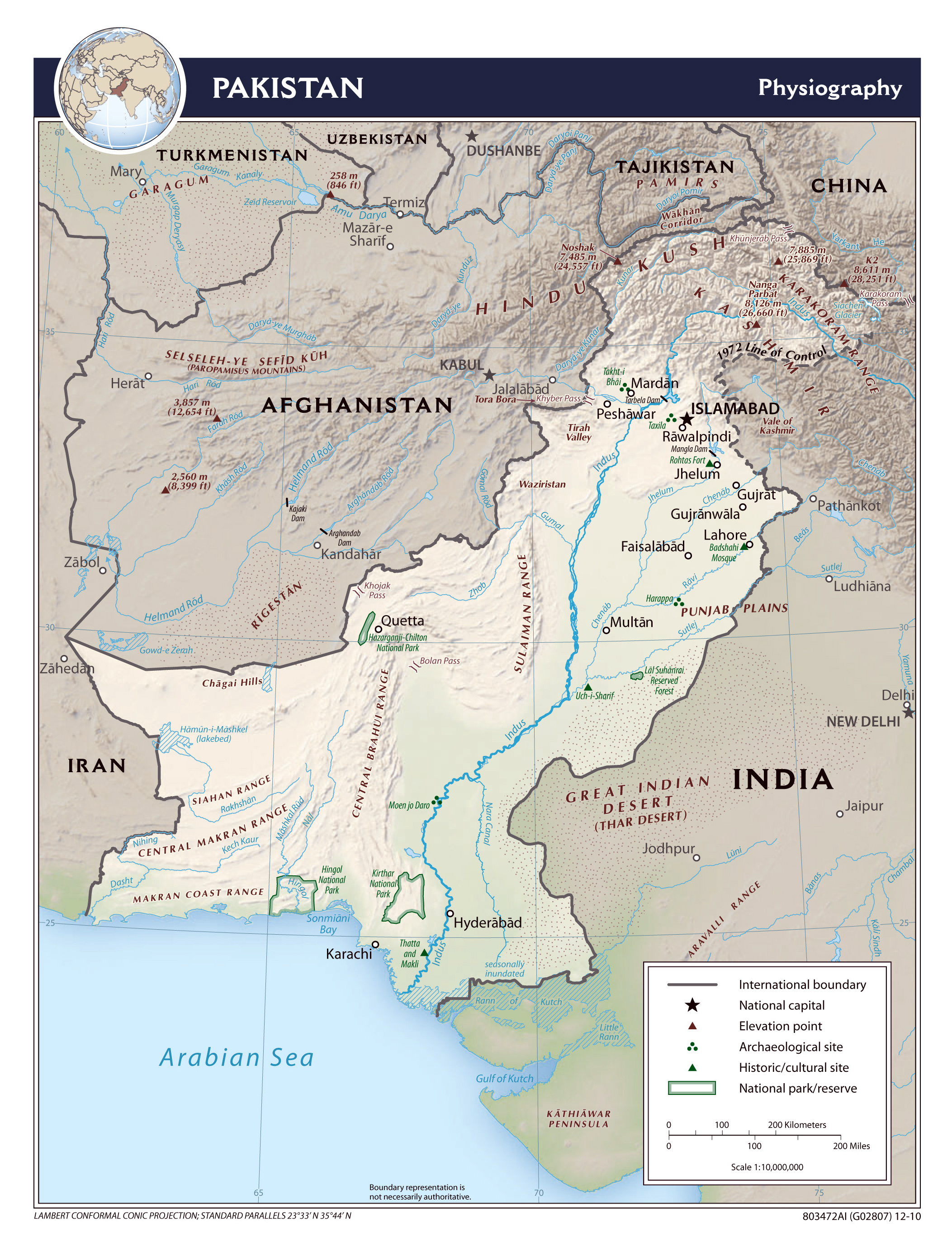 Пакистан - большая физиографическая карта - 2010. Большая физиографическая карта Пакистана - 2010.