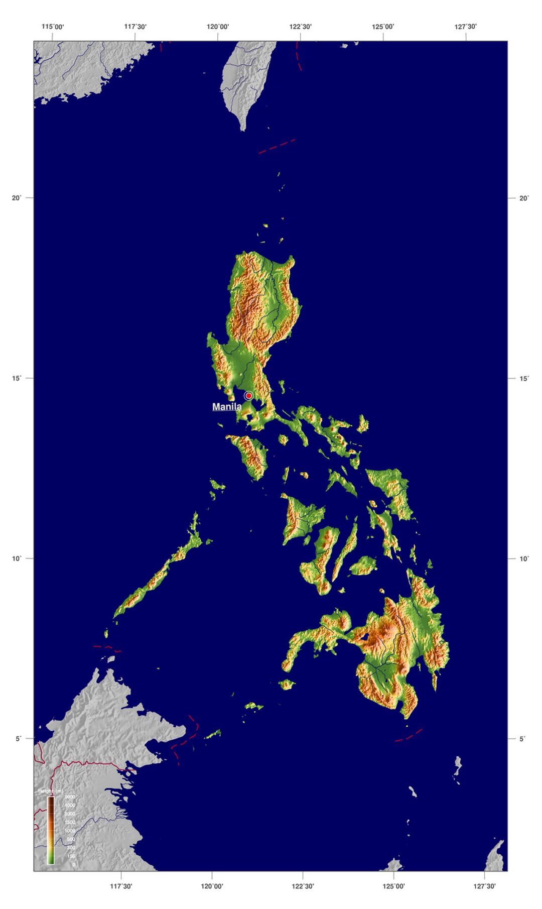 Филиппины - большая карта рельефа. Большая карта рельефа Филиппин.