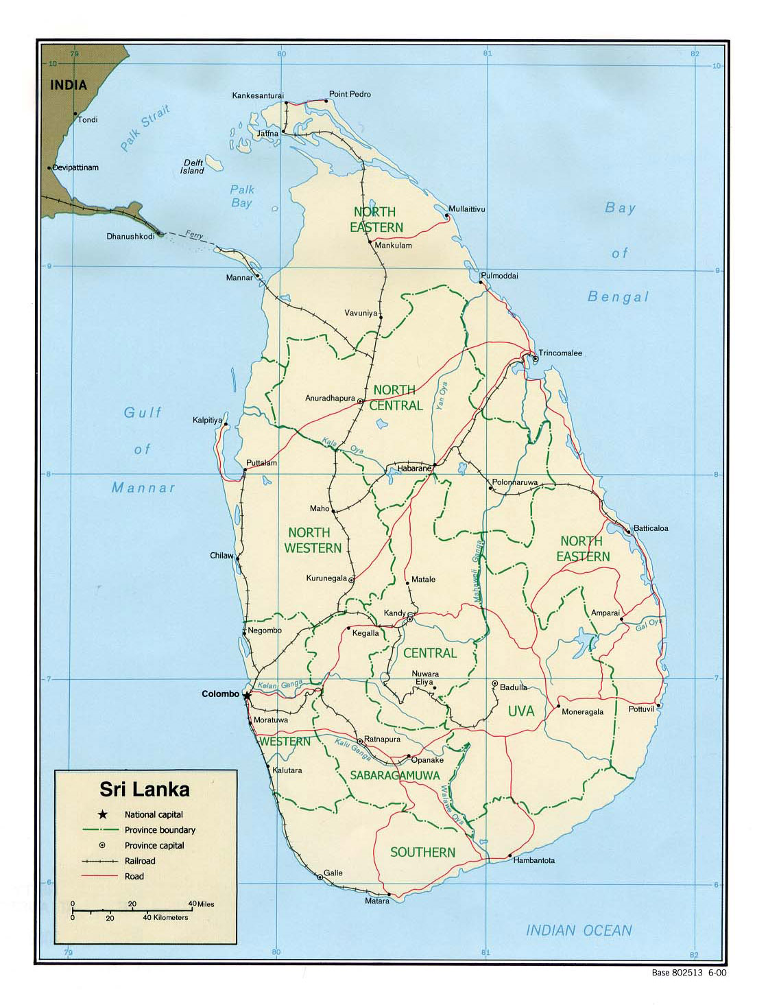 Шри-Ланка - детальная политическая и административная карта с дорогами, железными дорогами и крупными городами - 2000. Детальная политическая и административная карта Шри-Ланки с дорогами, железными дорогами и крупными городами - 2000.