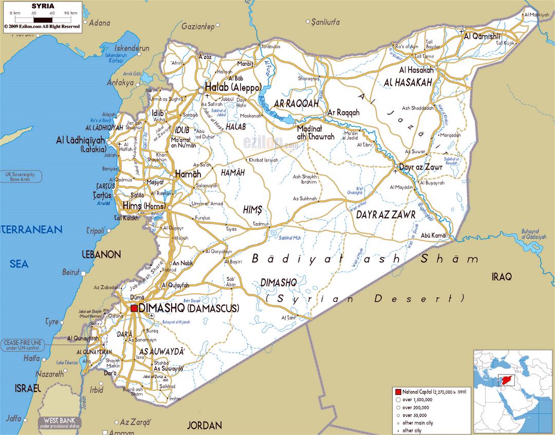 Сирия - большая карта дорог с городами и аэропортами. Большая карта дорог Сирии с городами и аэропортами.