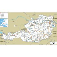 Большая детальная карта автомобильных дорог Австрии с рельефом