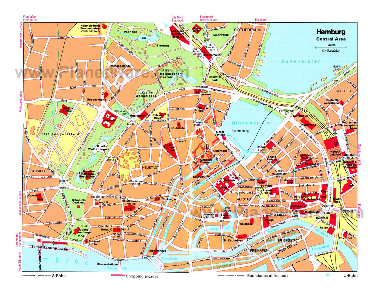 Центральная часть города Гамбург - детальная туристическая карта. Детальная туристическая карта центральной части города Гамбург.