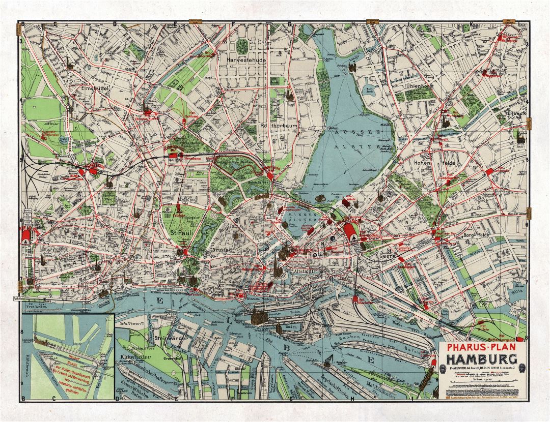 Гамбург - большая детальная старая карта - 1911. Большая детальная старая карта города Гамбурга - 1911.