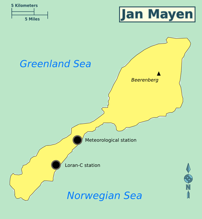 Остров Ян-Майен - детальная карта. Детальная карта острова Ян-Майен.