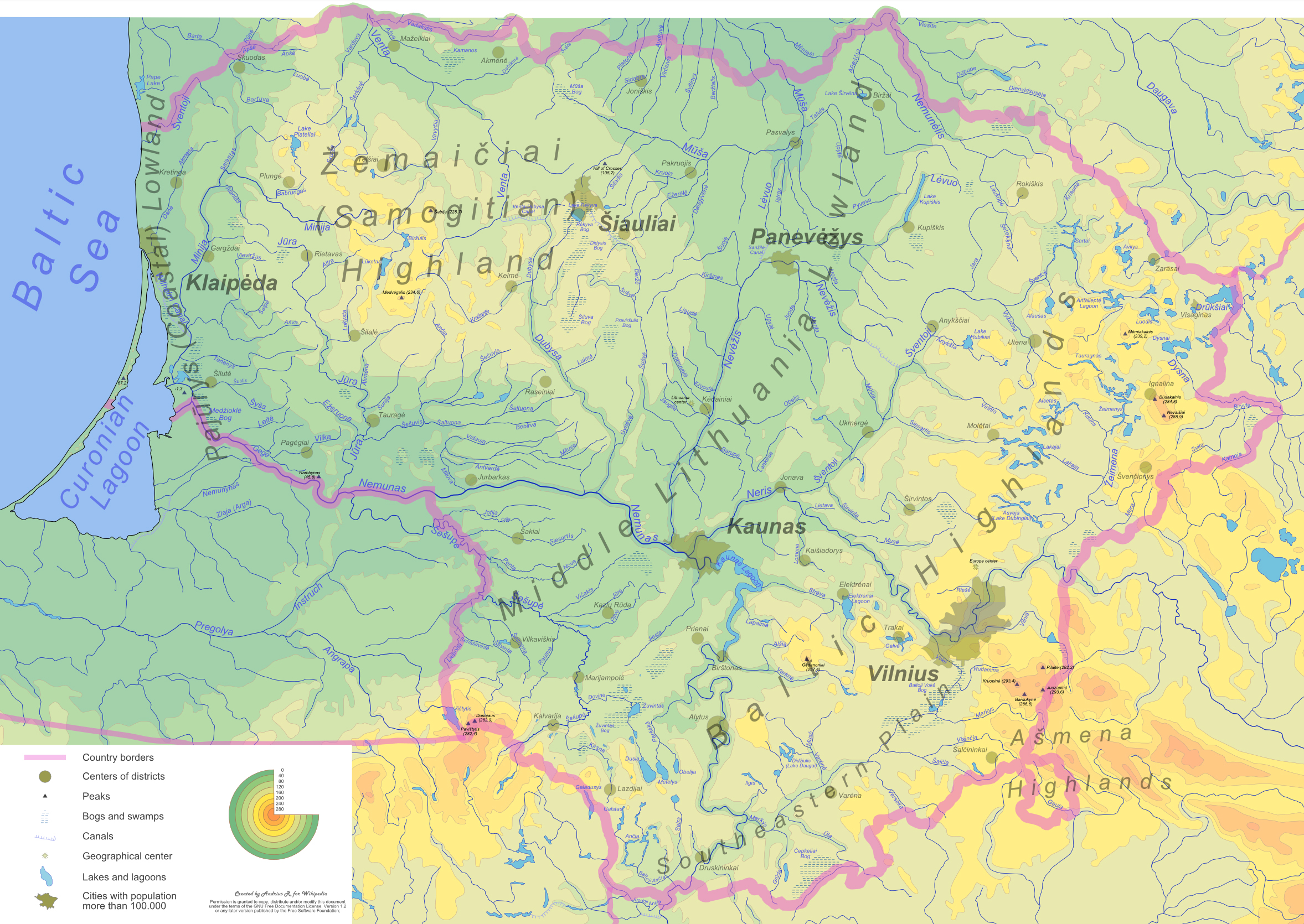 Литва - большая детальная физическая карта. Большая детальная физическая карта Литвы.