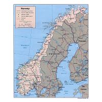Норвегия - крупномасштабная политическая и административная карта с дорогами, железными дорогами и крупными городами - 1962. Политическая и административная карта Норвегии.