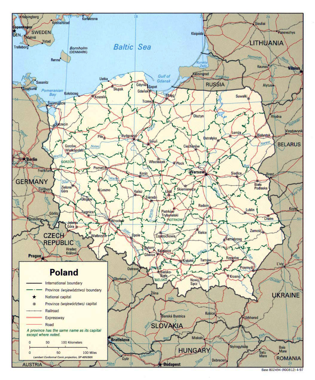 Польша - детальная политическая и административная карта - 1997. Детальная политическая и административная карта Польши - 1997.