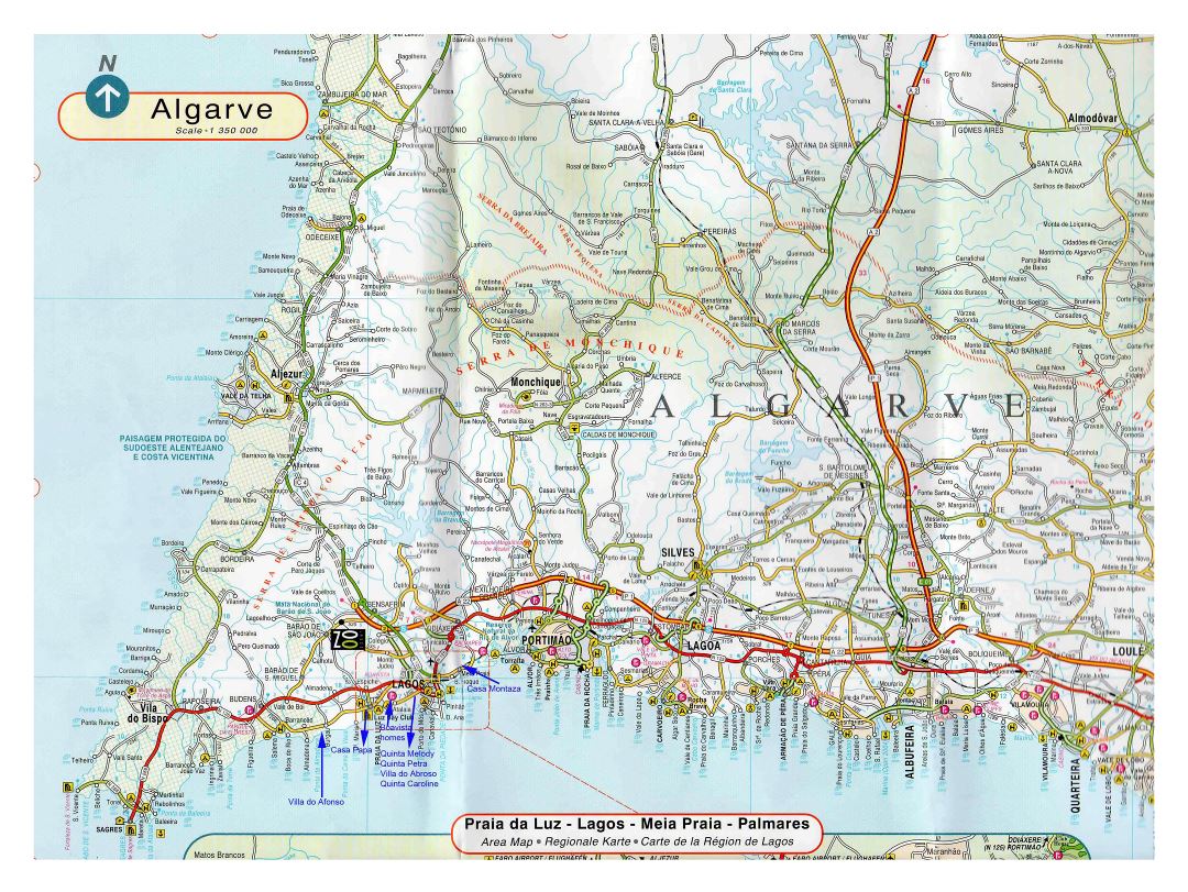 Алгарве - большая детальная карта дорог с другими пометками. Большая детальная карта дорог Алгарве с другими пометками.