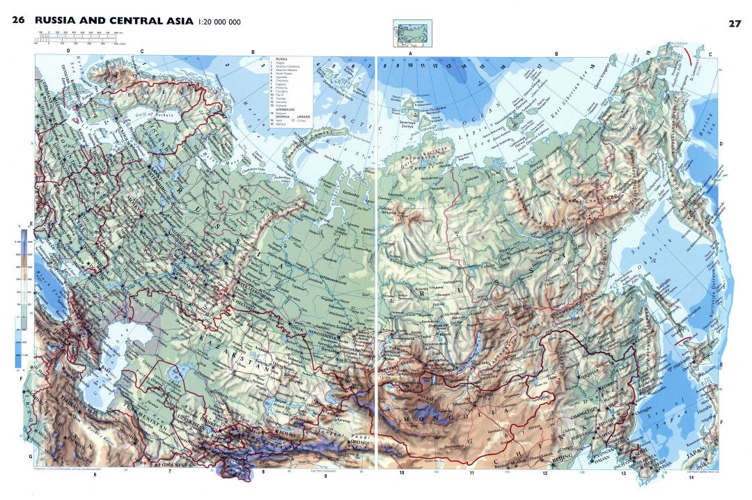 Россия - большая детальная физическая карта. Большая детальная физическая карта России.