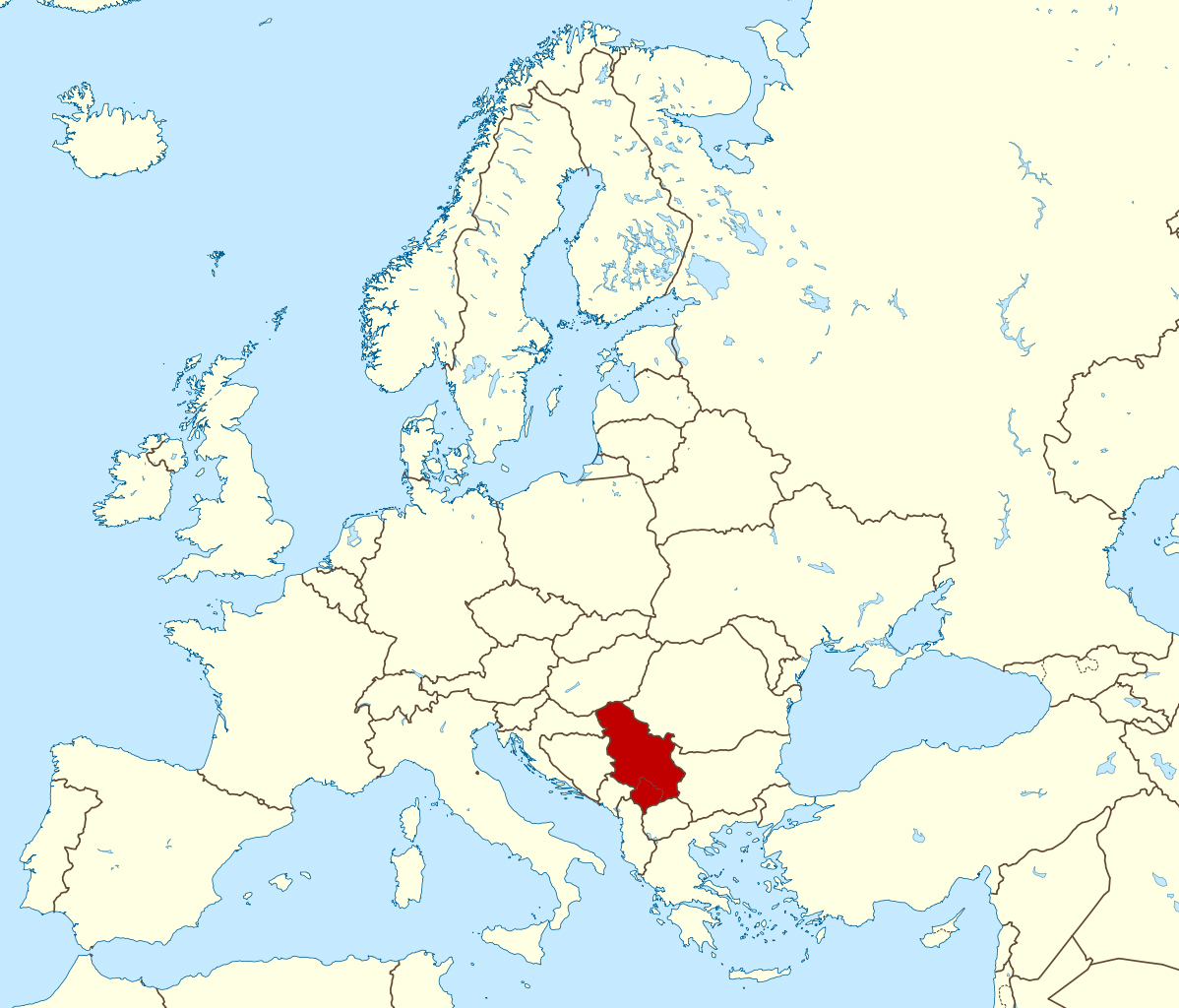 Сербия в Европе - детальная карта расположения. Детальная карта расположения Сербии в Европе.