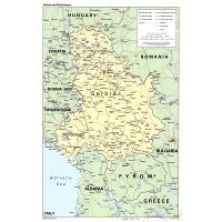 Сербия и Черногория - крупномасштабная политическая карта с дорогами, железными дорогами и крупными городами - 2005. Политическая карта Сербии и Черногории с дорогами, железными дорогами и крупными городами.