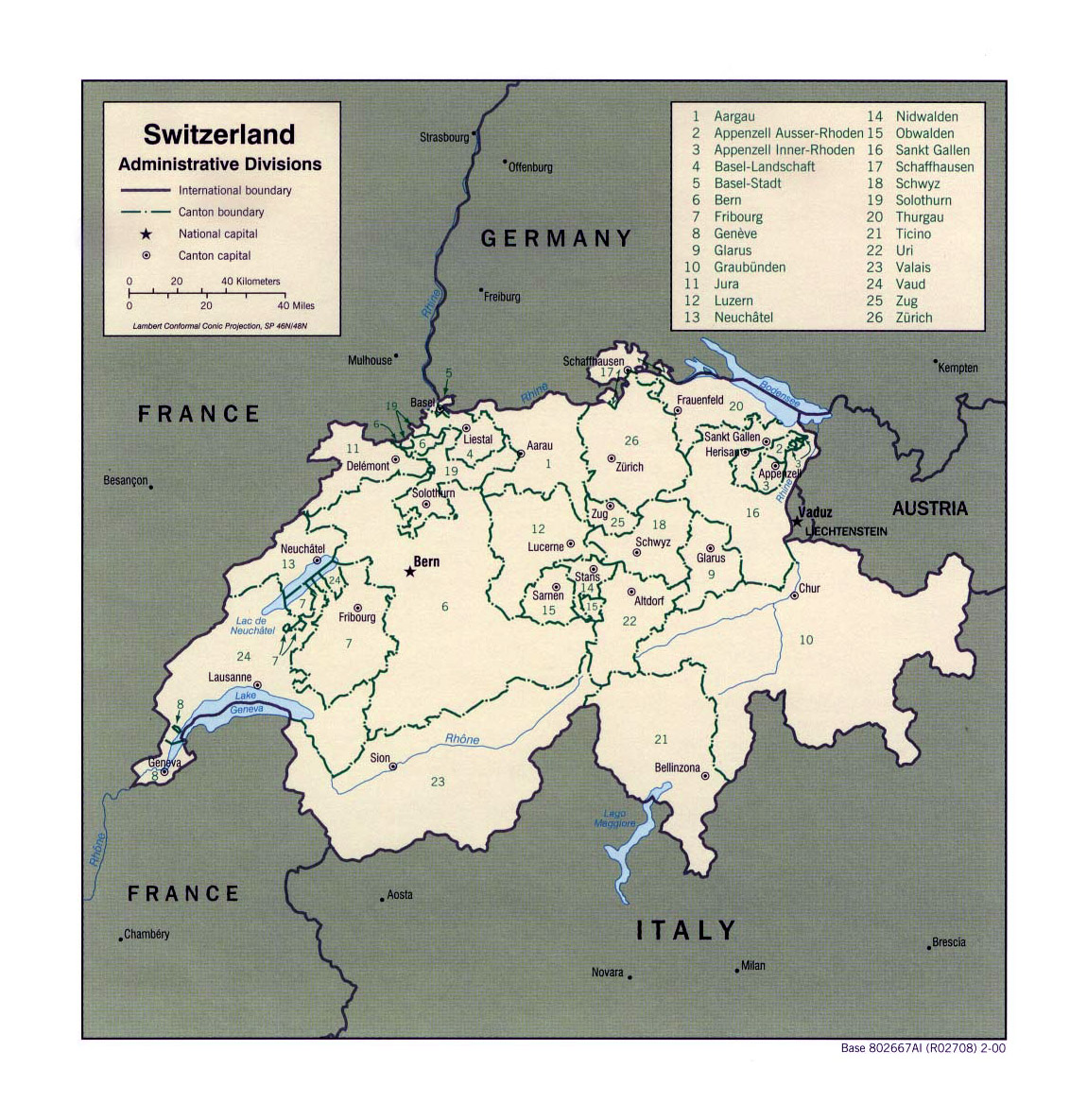 Швейцария - детальная карта административного деления. Детальная карта административного деления Швейцарии.