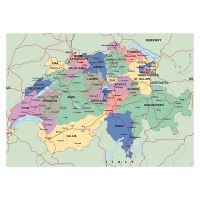 Швейцария - крупномасштабная политическая и административная карта с автодорогами и крупными городами - 1961. Политическая и административная карта Швейцарии.