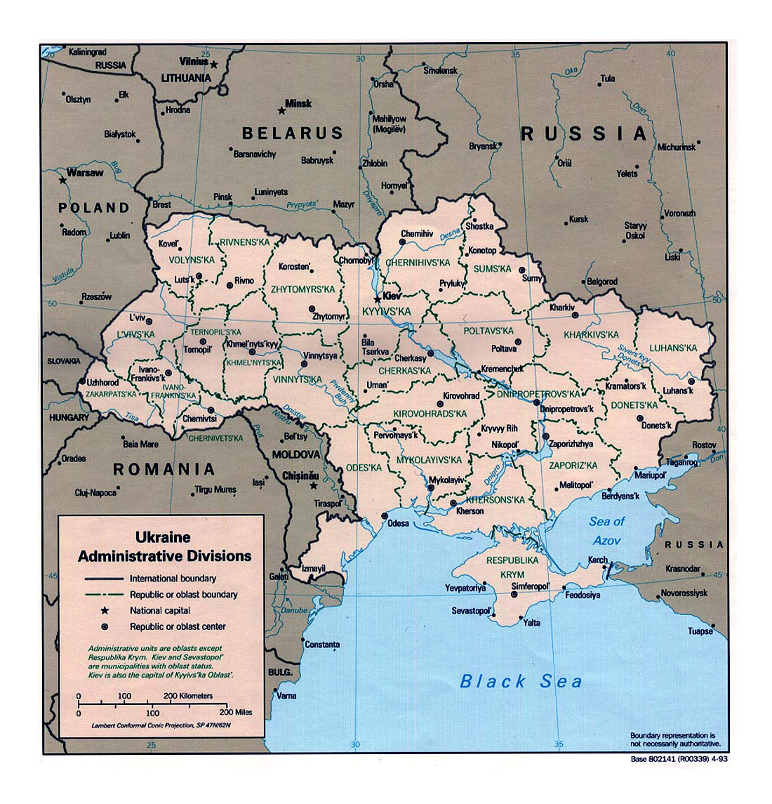 Украина - детальная карта административных делений - 1993. Детальная карта административных делений Украины - 1993.