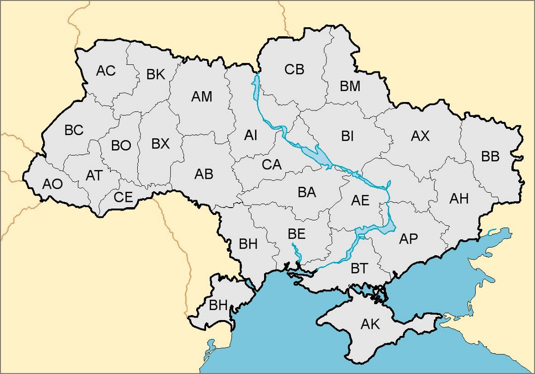 Украина - детальная карта автомобильных номеров. Детальная карта автомобильных номеров Украины.