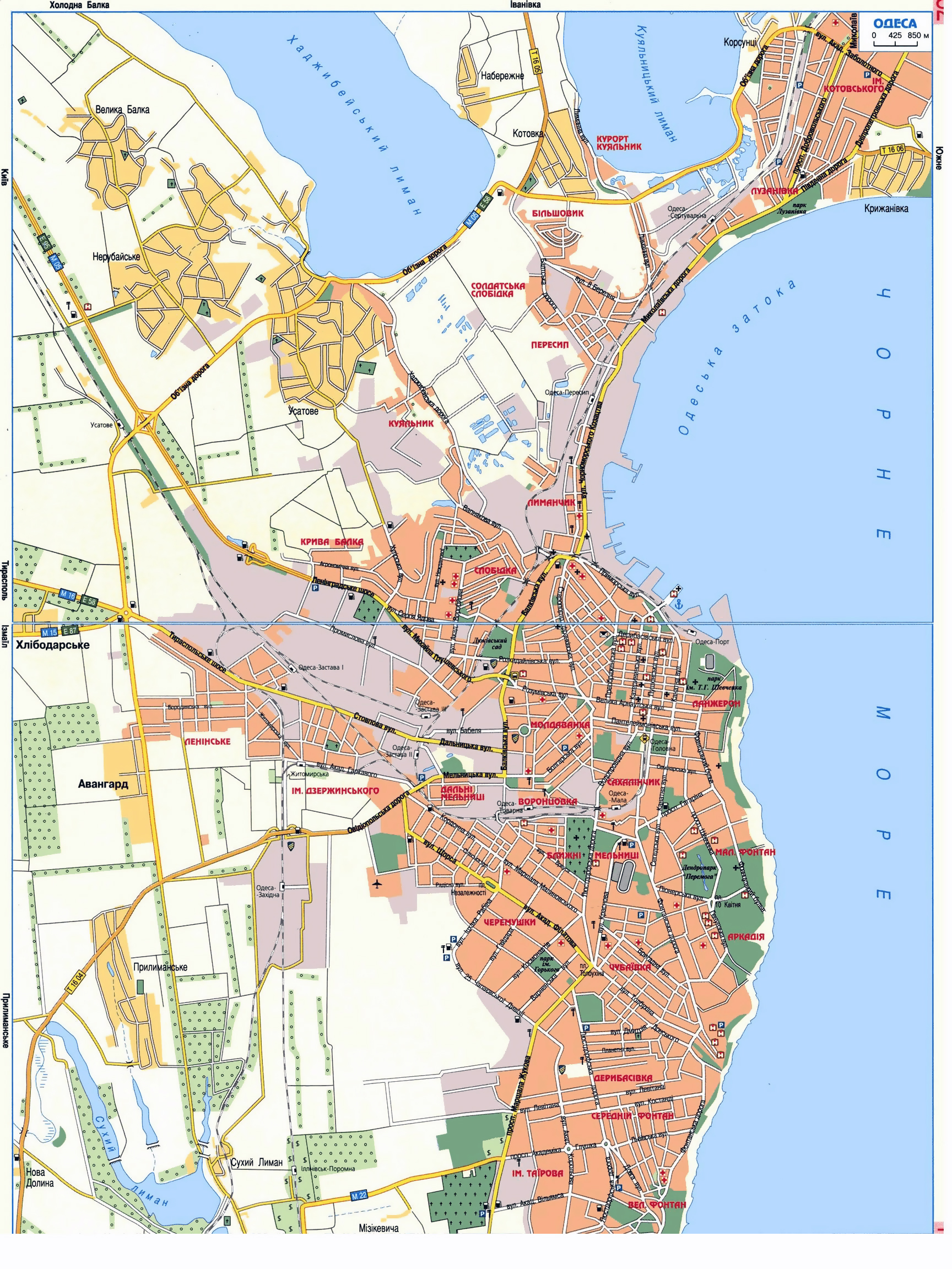 Город Одесса - детальная карта дорог на украинском языке. Детальная карта дорог города Одессы на украинском языке.