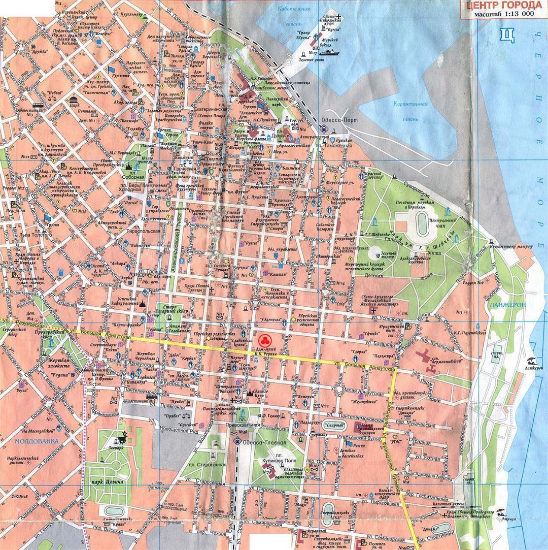 Центр города Одесса - детальная карта улиц на русском языке. Детальная картаулиц центра города Одессы на русском языке.