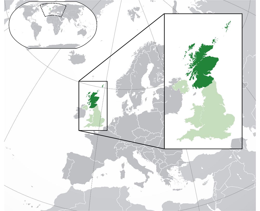 Шотландия — страна, являющаяся автономной административно-политической частью Великобритании. Занимает северную часть острова Великобритания и граничит по суше с Англией. С других сторон омывается морями Атлантического океана: Северным морем на востоке, Северным проливом и Ирландским морем на западе и юго-западе. Помимо территории на основном британском острове Шотландии также принадлежат около 790 малых островов, большинство из которых необитаемы.