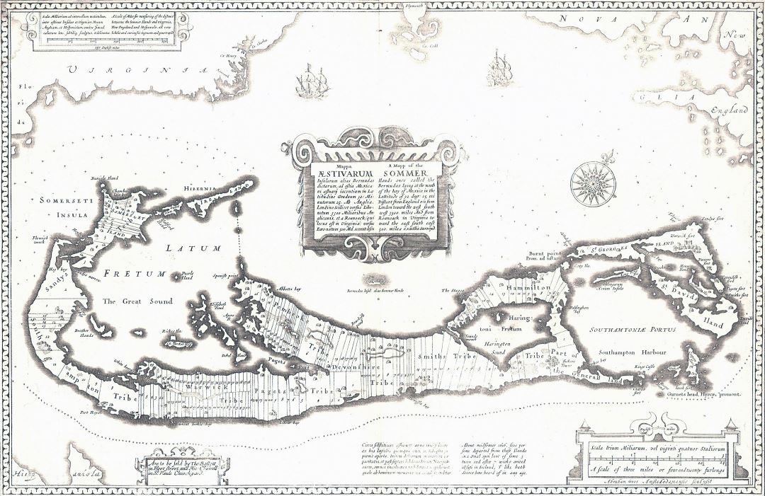Бермудские острова - большая подробная старая античная карта - 1676. Большая подробная старая античная карта Бермудских островов - 1676.