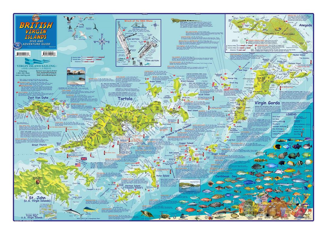 Британские Виргинские острова - большая карта путеводитель дайвинга и других приключений. Большая карта путеводитель дайвинга и других приключений Британских Виргинских островов.