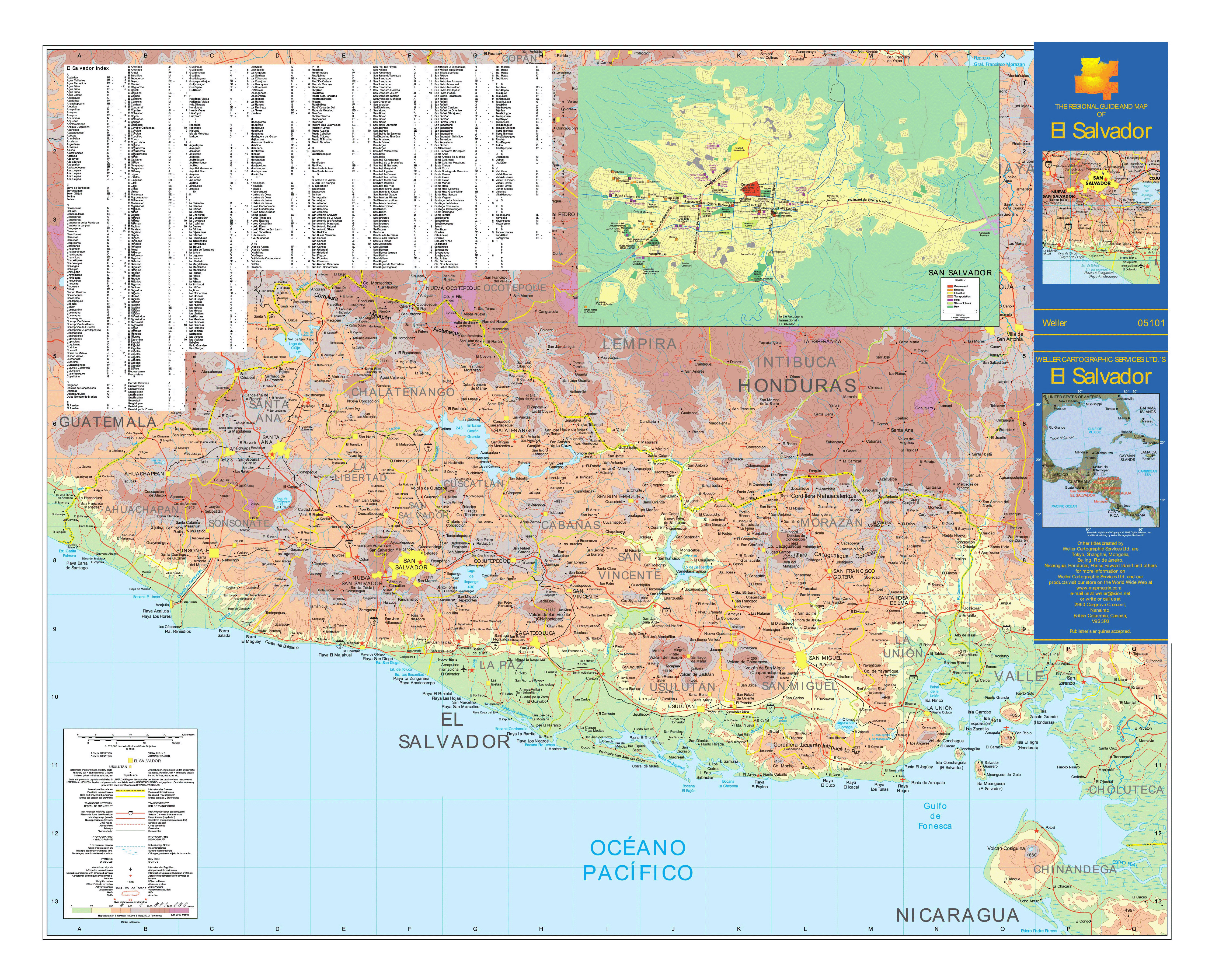 Сальвадор - большая детальная топографическая карта с дорогами, городами, аэропортами и другими пометками. Большая детальная топографическая карта Сальвадора с дорогами, городами, аэропортами и другими пометками.