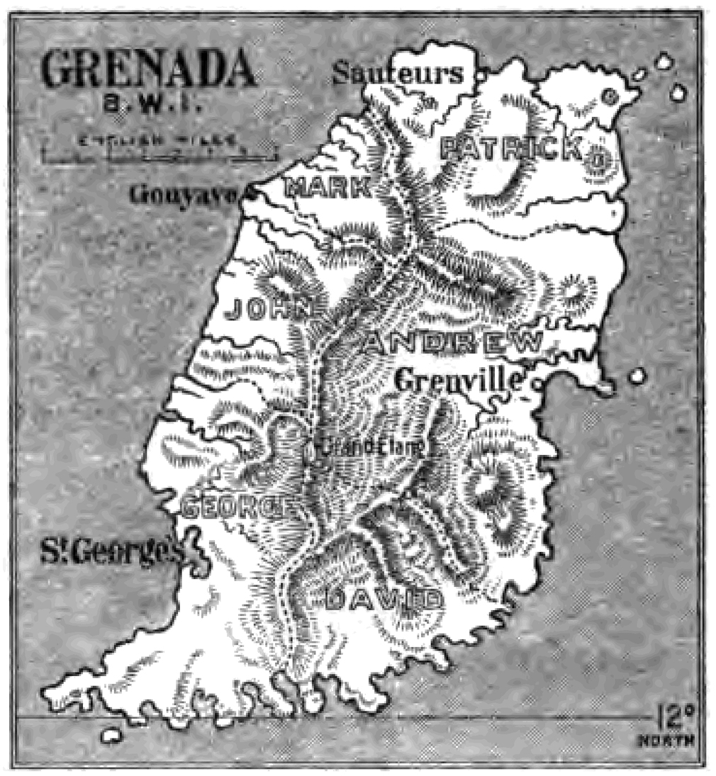 Гренада - большая детальная старая карта с рельефом - 1903. Большая детальная старая карта Гренады с рельефом - 1903.