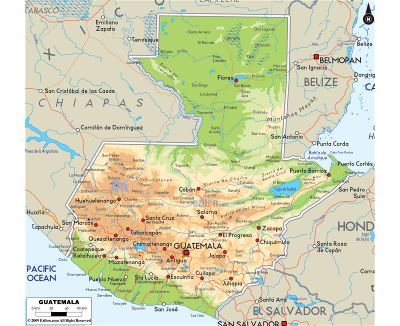 Гватемала, Республика Гватемала — государство в Центральной Америке. Граничит с Сальвадором на юго-востоке, Гондурасом на востоке, с Белизом на северо-востоке и Мексикой на севере и западе. Омывается Карибским морем на востоке и Тихим океаном на юге.