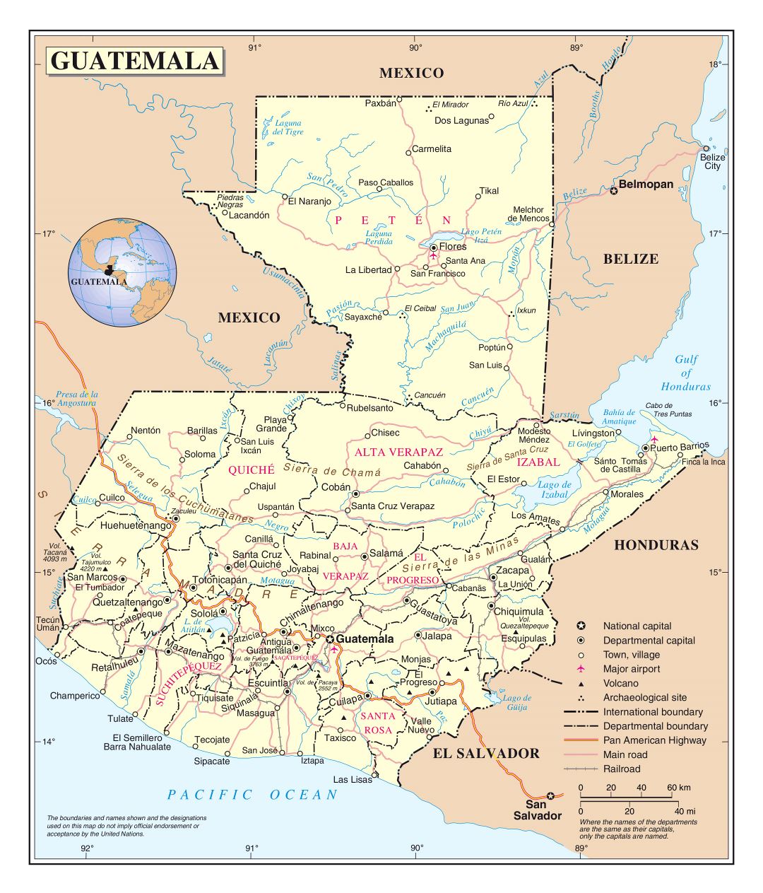 Гватемала - большая детальная политическая и административная карта с дорогами, железными дорогами, городами и аэропортами. Большая детальная политическая и административная карта Гватемалы с дорогами, железными дорогами, городами и аэропортами.
