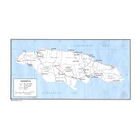 Ямайка - большая политическая и административная карта с дорогами, железными дорогами и городами - 2002. Политическая и административная карта Ямайки с дорогами, железными дорогами и городами - 2002.