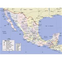 Мексика - политическая и административная карта с дорогами, железными дорогами, крупными городами и другими пометками. Политическая и административная карта Мексики с дорогами, железными дорогами, крупными городами и другими пометками.
