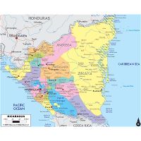 Никарагуа - большая карта административных делений с дорогами, городами и аэропортами. Большая карта административных делений Никарагуа с дорогами, городами и аэропортами.