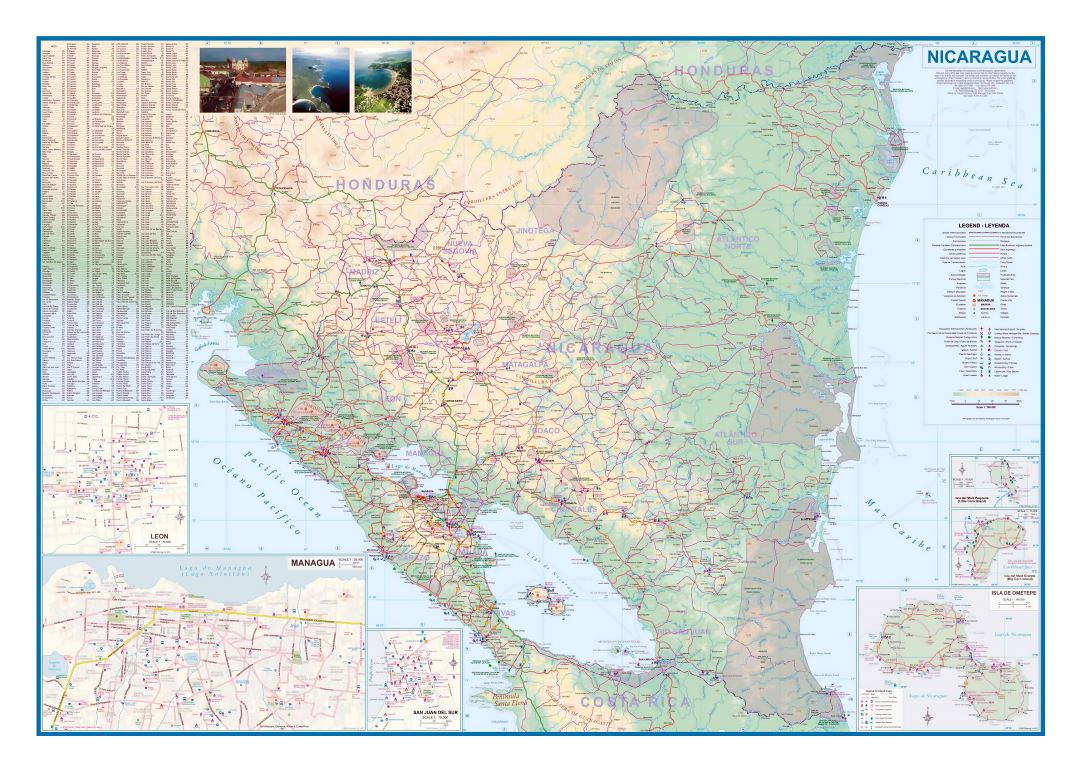 Никарагуа - большая детальная карта дорог с другими пометками. Большая детальная карта дорог Никарагуа с другими пометками.