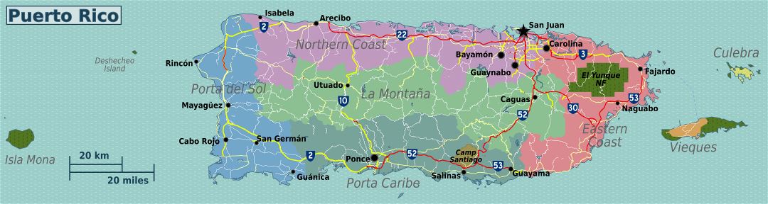 Пуэрто-Рико - большая карта регионов. Большая карта регионов Пуэрто-Рико.