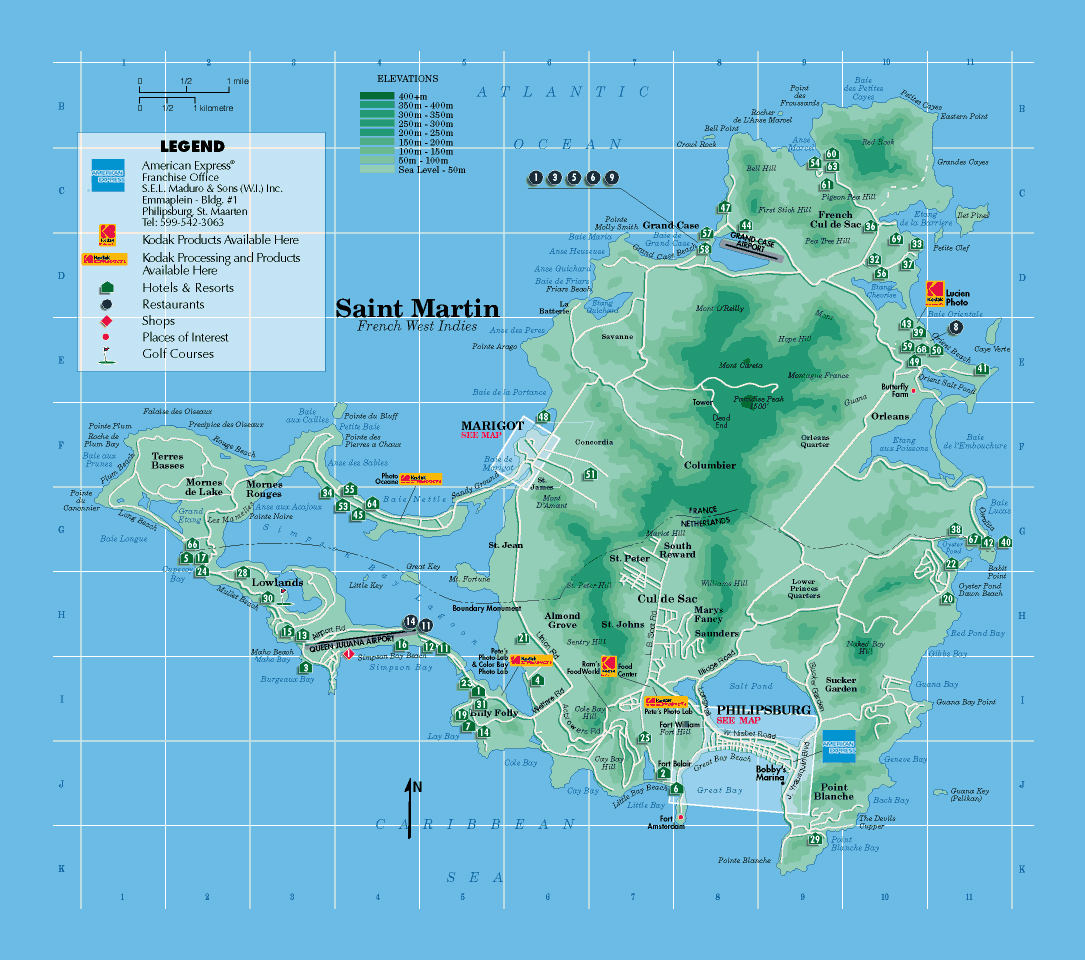 Синт-Мартен, Сен-Мартен - подробная туристическая карта с другими пометками. Подробная туристическая карта Синт-Мартена, Сен-Мартена с другими пометками.