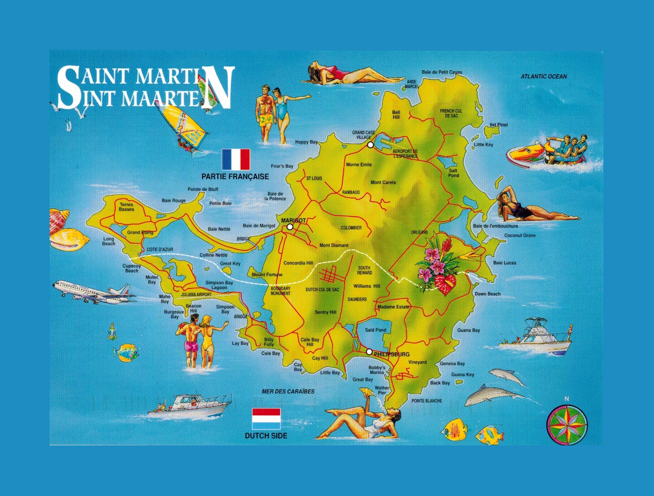 Синт-Мартен, Сен-Мартен - детальная туристическая иллюстрированная карта. Детальная туристическая иллюстрированная карта Синт-Мартена, Сен-Мартен.