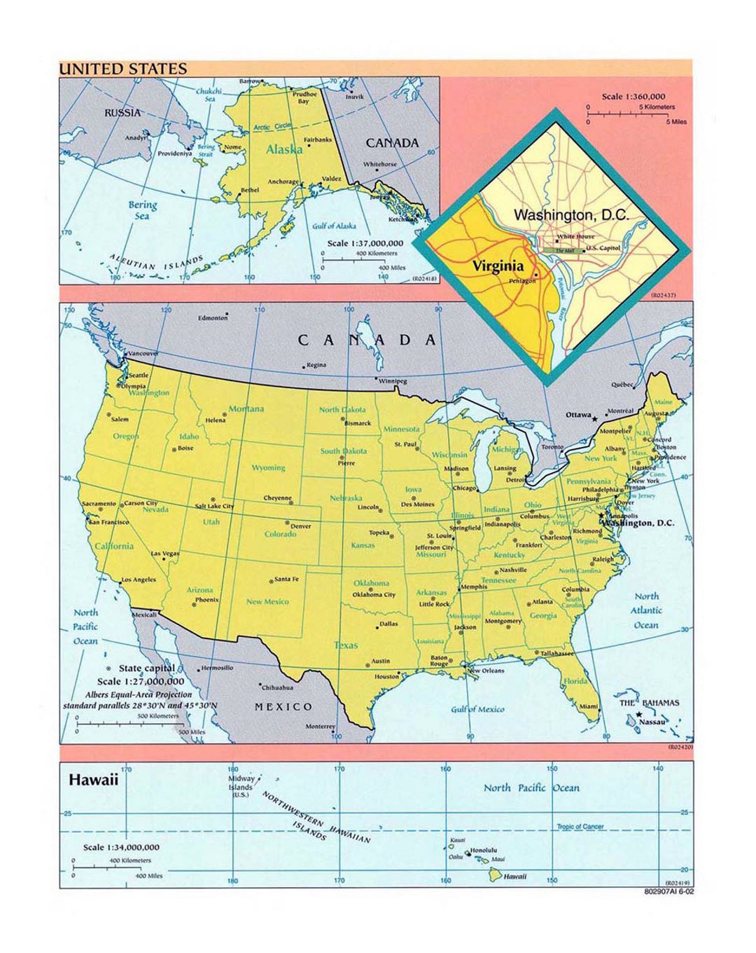 США - подробная политическая и административная карта - 2002. Подробная политическая и административная карта США - 2002.
