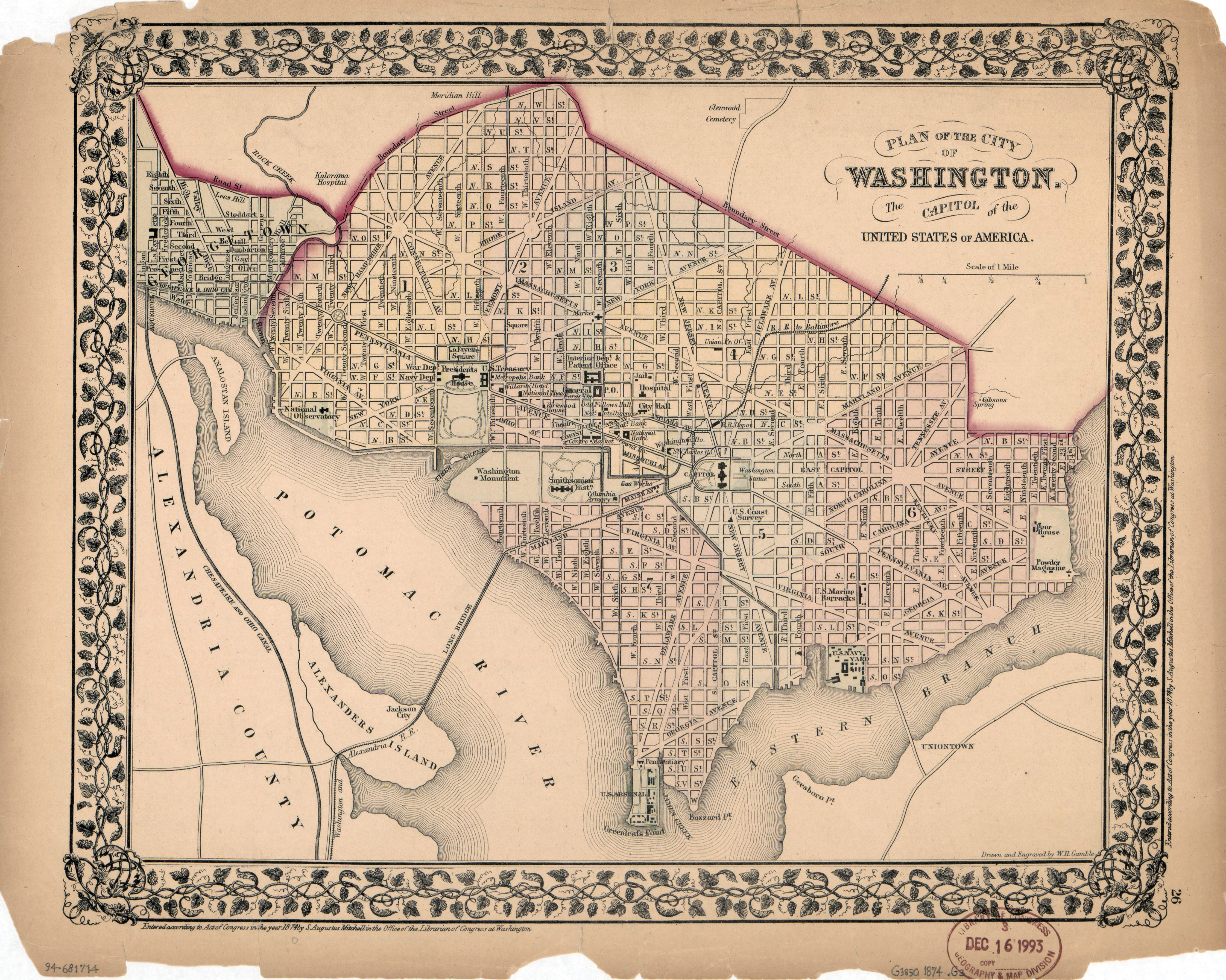 Город Вашингтон - большой детальный старый план - 1874. Старый план города Вашингтона - 1874.