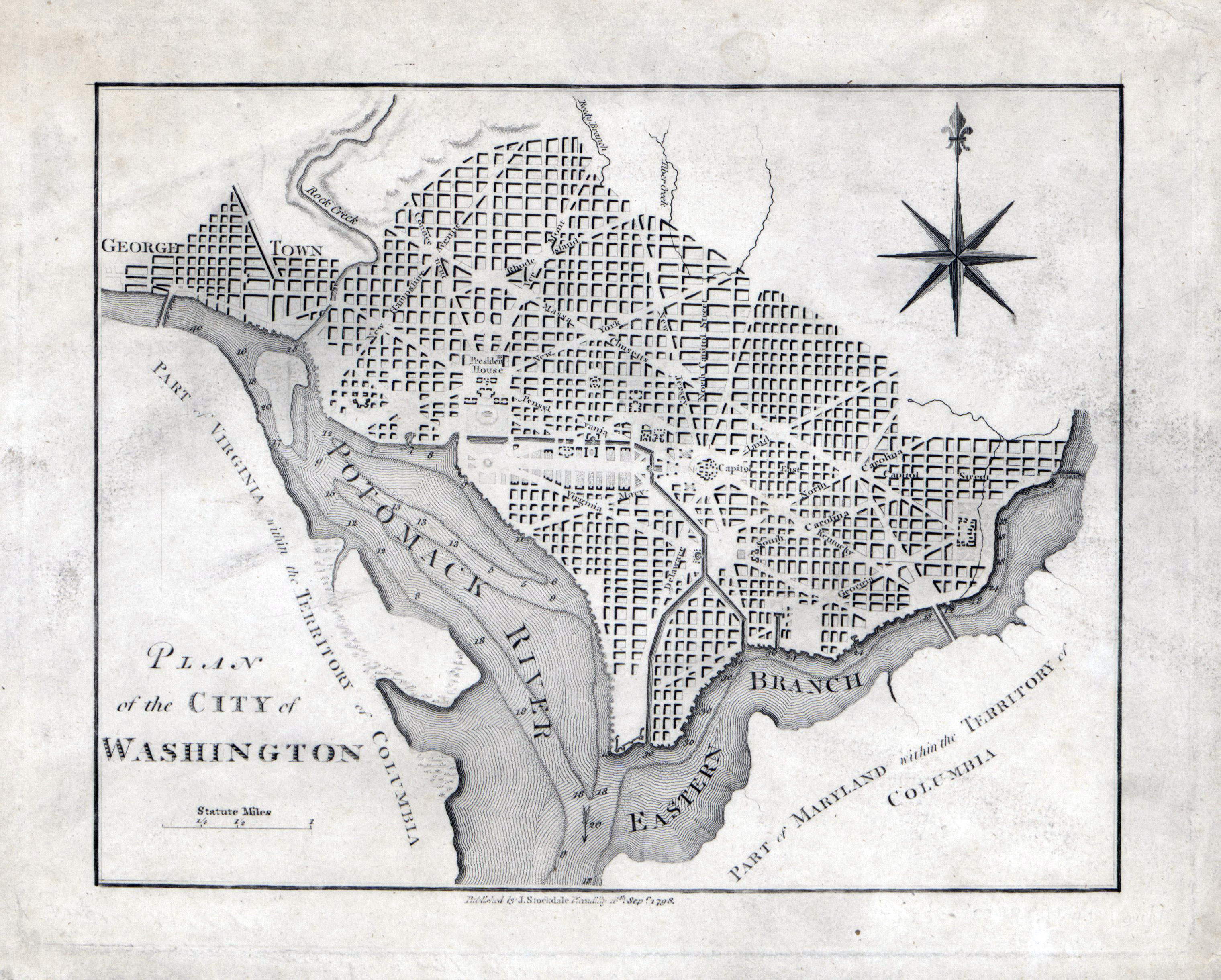 Город Вашингтон - большой детальный старый план - 1798. Большой детальный старый план города Вашингтона, округ Колумбия - 1798.