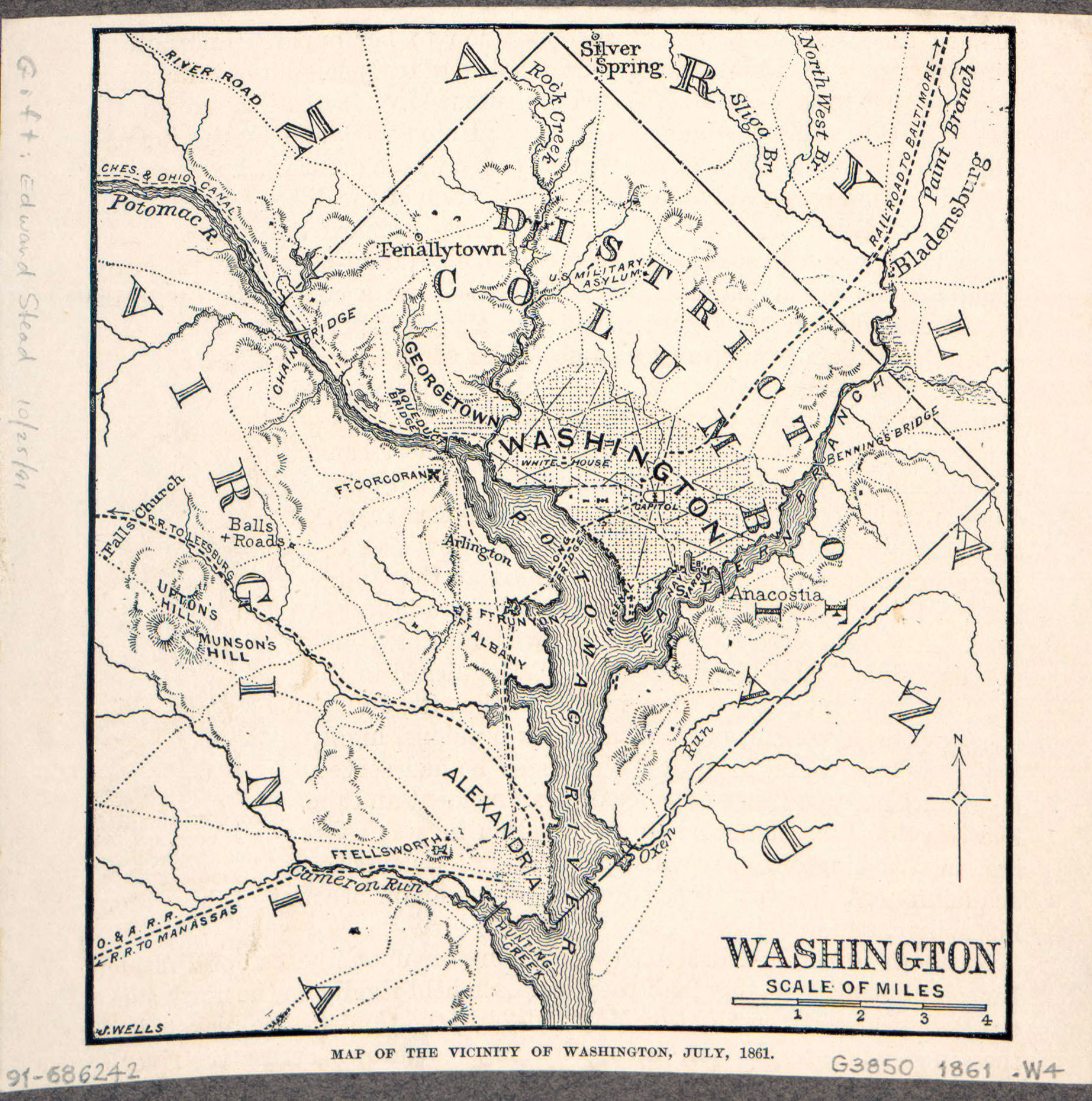 Окрестности Вашингтона - большая старая карта - 1861. Большая старая карта окрестностей Вашингтона - 1861.