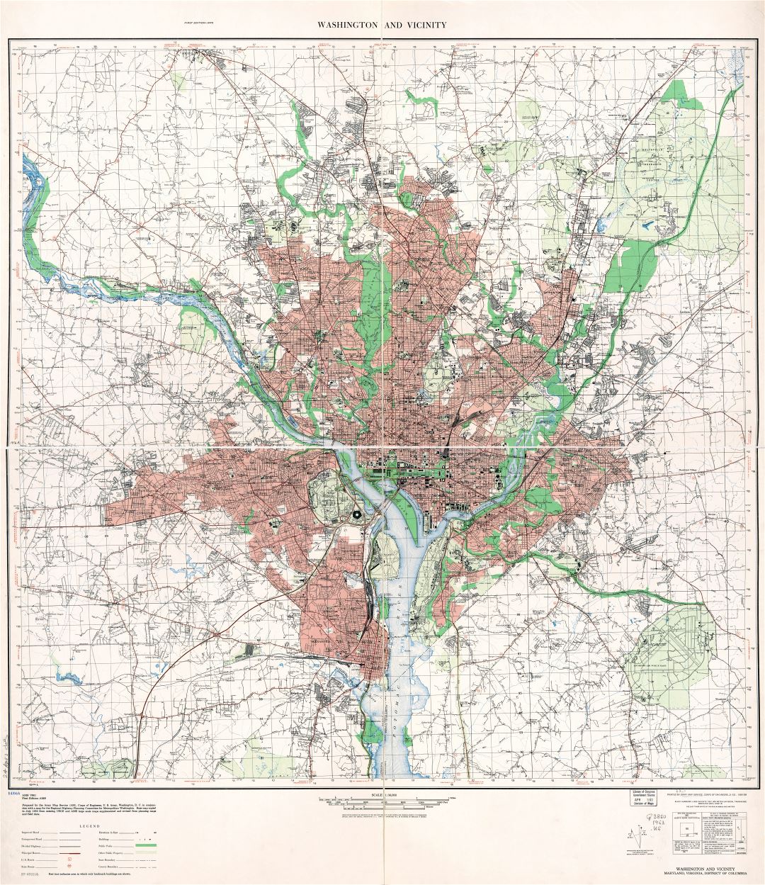 Вашингтон и окрестности - крупномасштабная подробная топографическая карта - 1953. Крупномасштабная подробная топографическая карта Вашингтона и окрестностей - 1953.