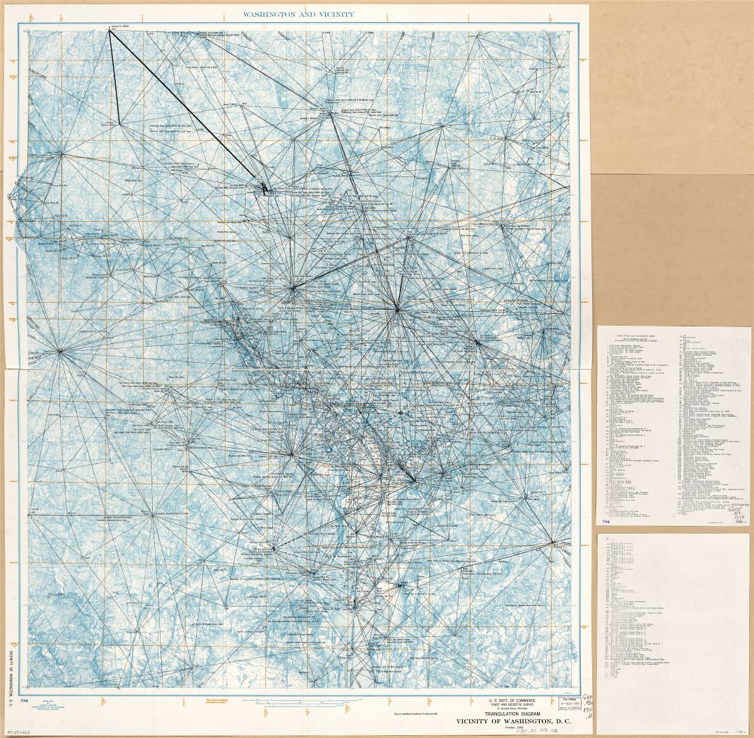 Окрестности Вашингтона, округ Колумбия - крупномасштабная подробная карта схемы триангуляции - 1958. Крупномасштабная подробная карта схемы триангуляции окрестностей Вашингтона, округ Колумбия - 1958.
