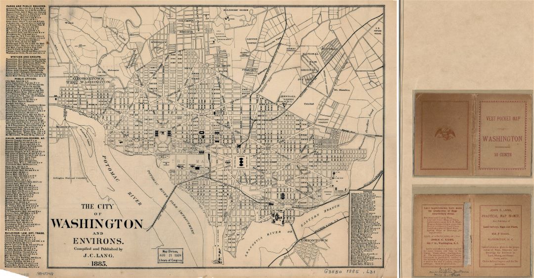 Город Вашингтон и окрестности - крупномасштабная старая карта - 1885. Крупномасштабная старая карта города Вашингтона и окрестностей - 1885.