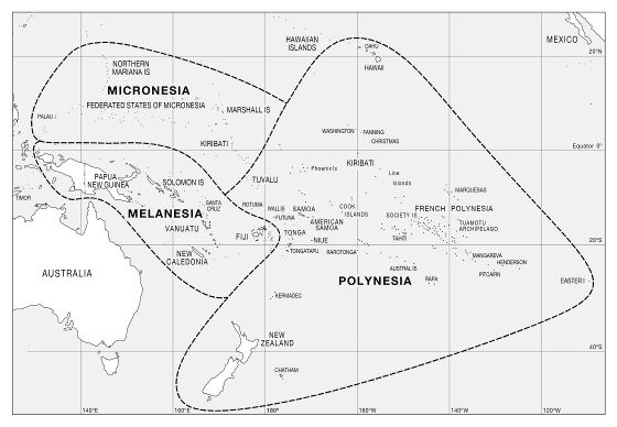 Микронезия, Меланезия и Полинезия - большая политическая карта. Большая политическая карта Микронезии, Меланезии и Полинезии.